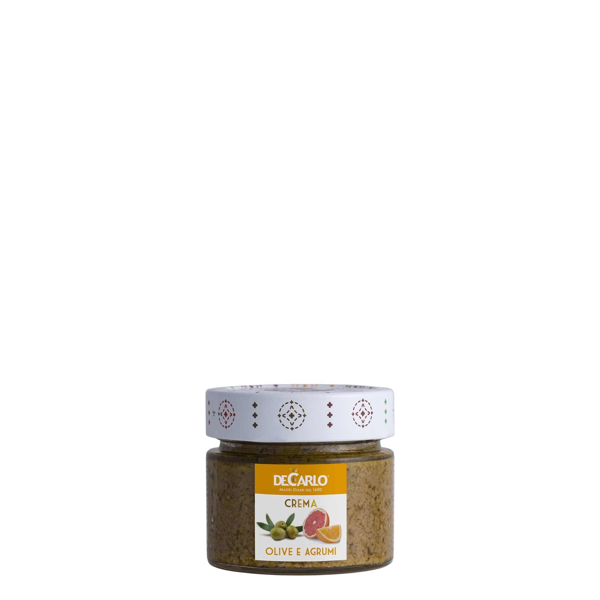 Marmellate e confetture dolciOlii extravergine d'olivaPasta artigianaleTaralli & co.Sughi, creme e sottoliCreme piccanti e superpiccantiViniLiquoriDe Carlo – Crema di Olive Verdi agli Agrumi