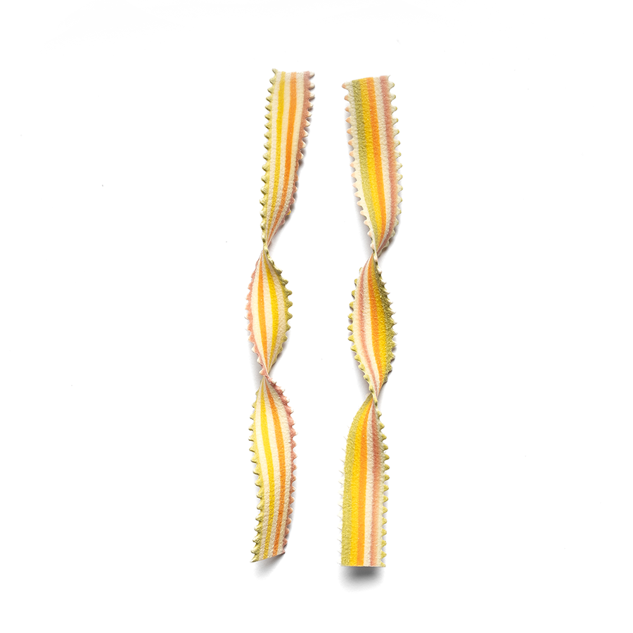 Semola di grano duro, curcuma 2,5%, farina di spinacio 2%, aroma naturale di barbabietola 2%, aroma naturale di paprica 1%.