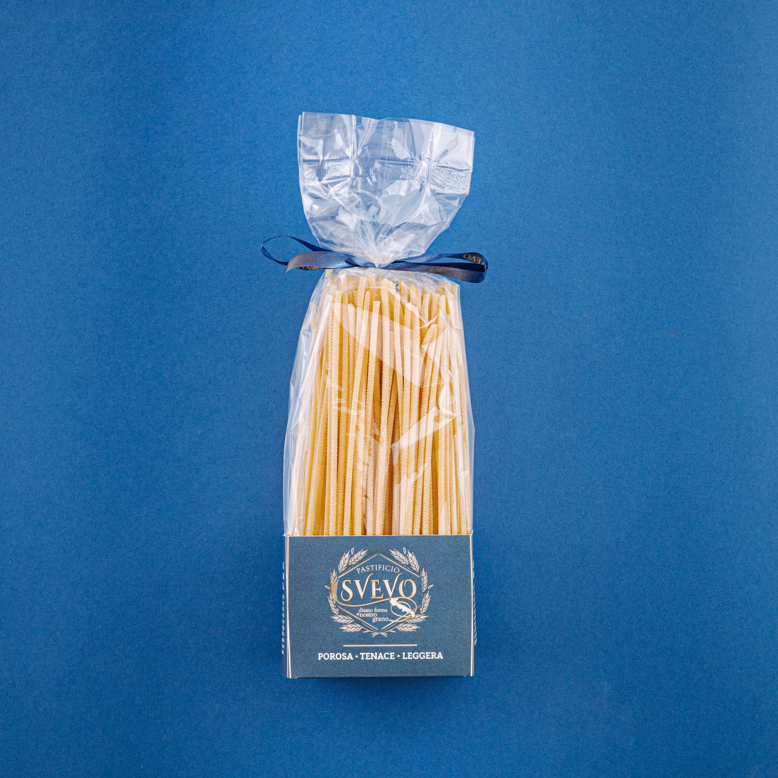 Categorie Marmellate e confetture dolciOlii extravergine d'olivaPasta artigianaleRegionaleAromatizzataPasta biancaTaralli & co.DolciSalatiSughi, creme e sottoliCondimenti per pastaPatè e cremeSottoliCreme piccanti e superpiccantiViniLiquori Linguine – Pastificio SvevoPasta artigianale non pastorizzata a lenta essicazione a basse temperature con grani pugliesi.