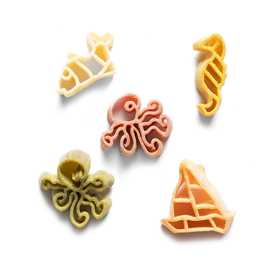 Semola di grano duro, curcuma, farina di spinacio, aroma naturale di barbabietola, aroma naturale di paprica.
