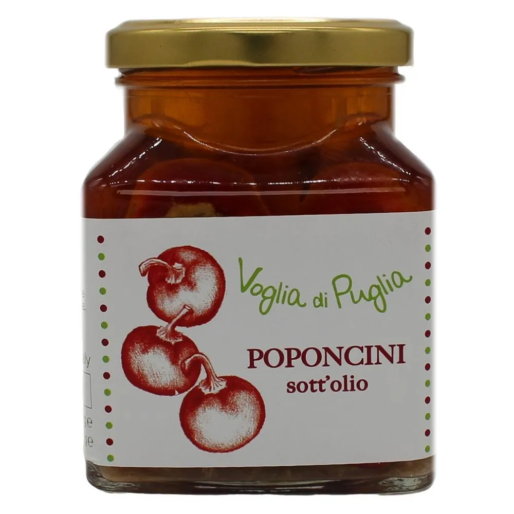 Categorie Marmellate e confetture dolciOlii extravergine d'olivaPasta artigianaleRegionaleAromatizzataPasta biancaTaralli & co.DolciSalatiSughi, creme e sottoliCondimenti per pastaPatè e cremeSottoliCreme piccanti e superpiccantiViniLiquori Poponcini sott’olio (Peperoncini ripieni di tonno sott’olio)